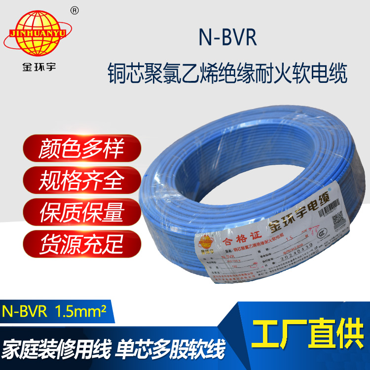 【產品描述】:N-BVR是銅芯聚氯乙烯絕緣耐火軟電線,專為固定布線時要求柔軟的場合而設計。適用于交流額定電壓450/750V及以下的動力裝置的固定敷...