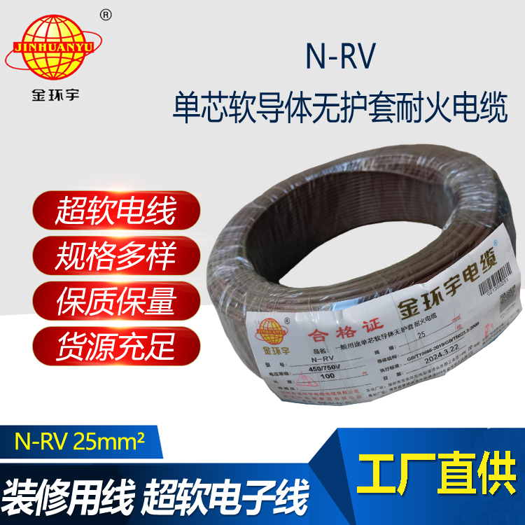 金環宇電線電纜 25平方銅芯電線 N-RV 25平方 耐火電線報價