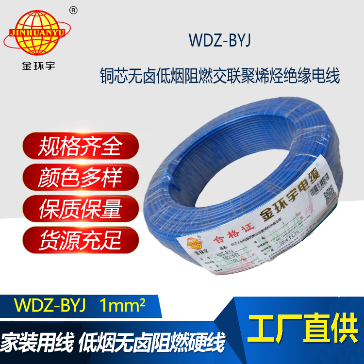 WDZ-BYJ全稱為銅芯無鹵低煙阻燃交聯聚烯烴絕緣電纜;符合解釋說明:WDZ表示低煙無鹵阻燃;B代表布電線;YJ表示交聯聚乙烯;