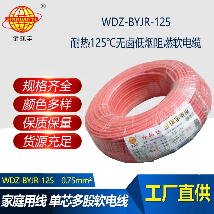 金環宇電線 0.75平方電線 WDZ-BYJR-125 低煙無鹵阻燃軟電線