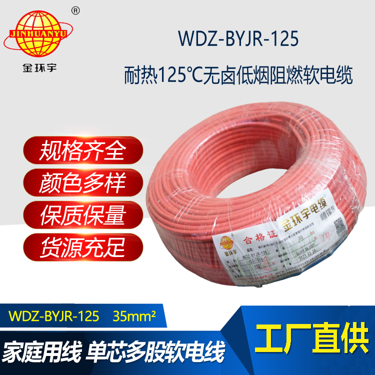 金環宇電線 低煙無鹵阻燃耐熱電線WDZ-BYJR-125-35平方軟電線價格