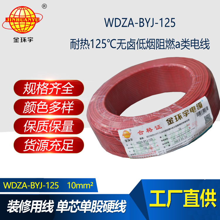 WDZA-BYJ-125全稱為耐熱125℃無鹵低煙阻燃A類交聯聚烯烴絕緣電纜;符合解釋說明:WDZ表示低煙無鹵阻燃;A代表A類阻燃;B代表布電線;YJ表示交聯聚乙烯;