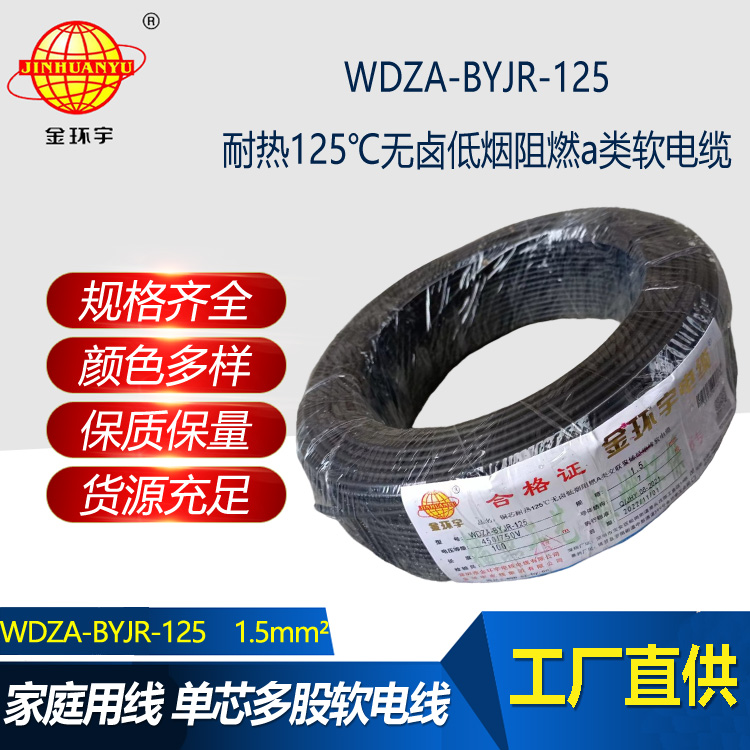 WDZA-BYJR-125電線是一款銅芯耐熱125℃無鹵低煙阻燃A類交聯聚烯烴絕緣軟電纜,具有卓越的性能和優異的品質,是客戶喜歡的理想選擇。