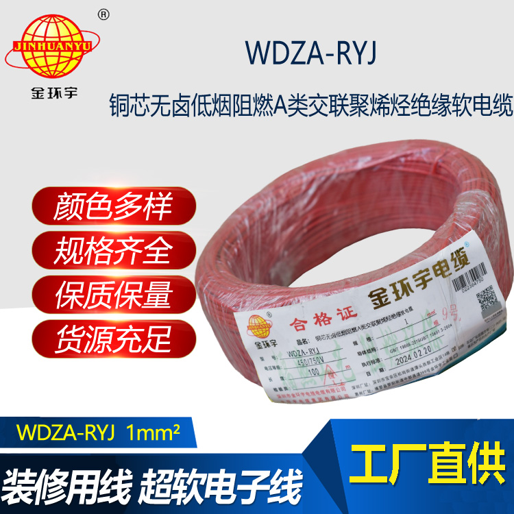 WDZA-RYJ低煙無鹵阻燃電線具有高阻燃、耐高溫、低煙低毒的良好性能,適用于額定電壓450/750V及以下耐熱105℃或125℃固定布線和電力、電子設備內部連接線,如家庭裝修、消防設備、緊急電源插座等供電。