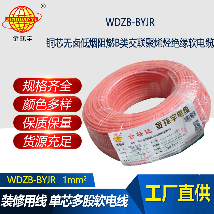 WDZB-BYJR指低煙無鹵阻燃聚烯烴護套,交聯聚乙烯絕緣軟電線。WDZB分別是無鹵、低煙、阻燃、聚烯烴,B指電線,YJ是交聯聚乙烯絕緣,R是軟。