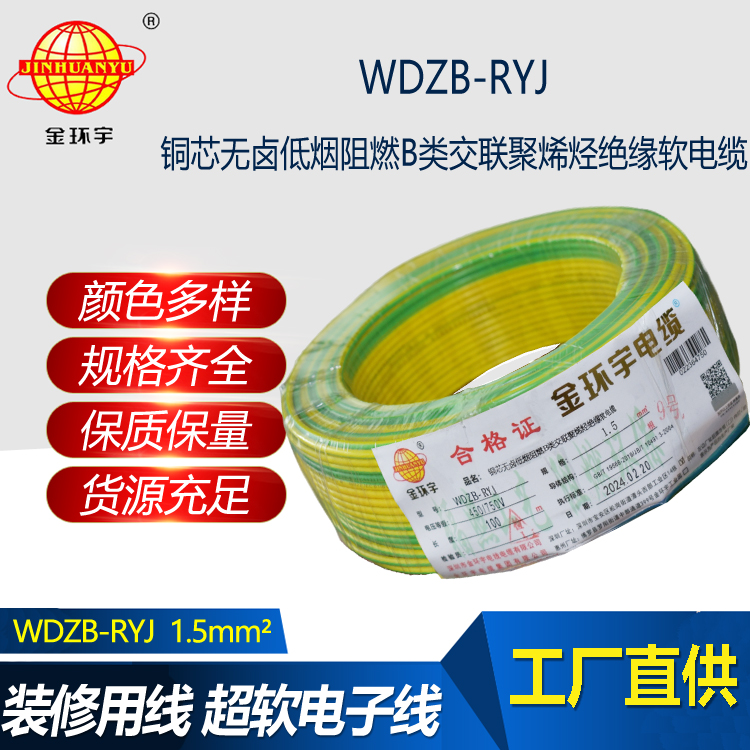 WDZB-RYJ低煙無鹵阻燃電線具有高阻燃、耐高溫、低煙低毒的良好性能,適用于額定電壓450/750V及以下耐熱105℃或125℃固定布線和電力、電子設備內部連接線,如家庭裝修、消防設備、緊急電源插座等供電。