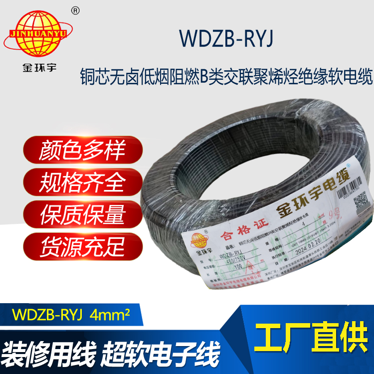 WDZB-RYJ低煙無鹵阻燃電線具有高阻燃、耐高溫、低煙低毒的良好性能,適用于額定電壓450/750V及以下耐熱105℃或125℃固定布線和電力、電子設備內(nèi)部連接線,如家庭裝修、消防設備、緊急電源插座等供電。