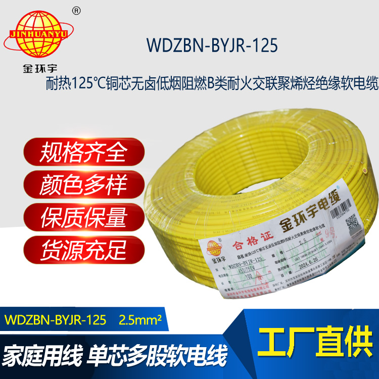 這款WDZBN-BYJR-125低煙無鹵電線是您在電力傳輸和工業領域中的理想選擇。采用銅芯耐熱材料,耐熱達到125℃,B類耐火交聯聚烯烴絕緣軟電線。其特有的無鹵低煙設計,保證燃燒時產生...