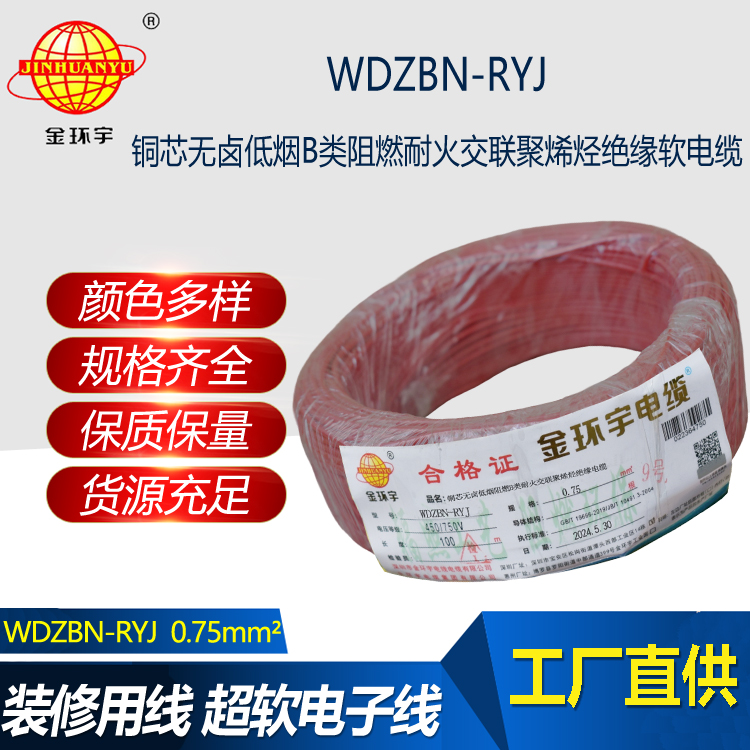 WDZBN-RYJ電纜:全稱B級阻燃耐火低煙無鹵交聯聚烯烴絕緣布電線,執行標準GB/T19666-2005。