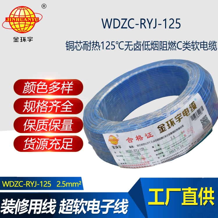 尊敬的客戶,感謝您對金環宇的產品感興趣。我們榮幸地向您介紹WDZC-RYJ-125低煙無鹵C級阻燃電線。