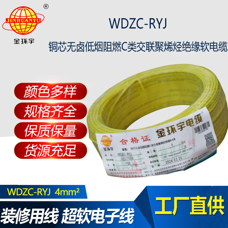WDZC-RYJ低煙無鹵阻燃電線具有高阻燃、耐高溫、低煙低毒的良好性能,適用于額定電壓450/750V及以下耐熱105℃或125℃固定布線和電力、電子設備內(nèi)部連接線,如家庭裝修、消防設備、緊急電源插座等供電。
