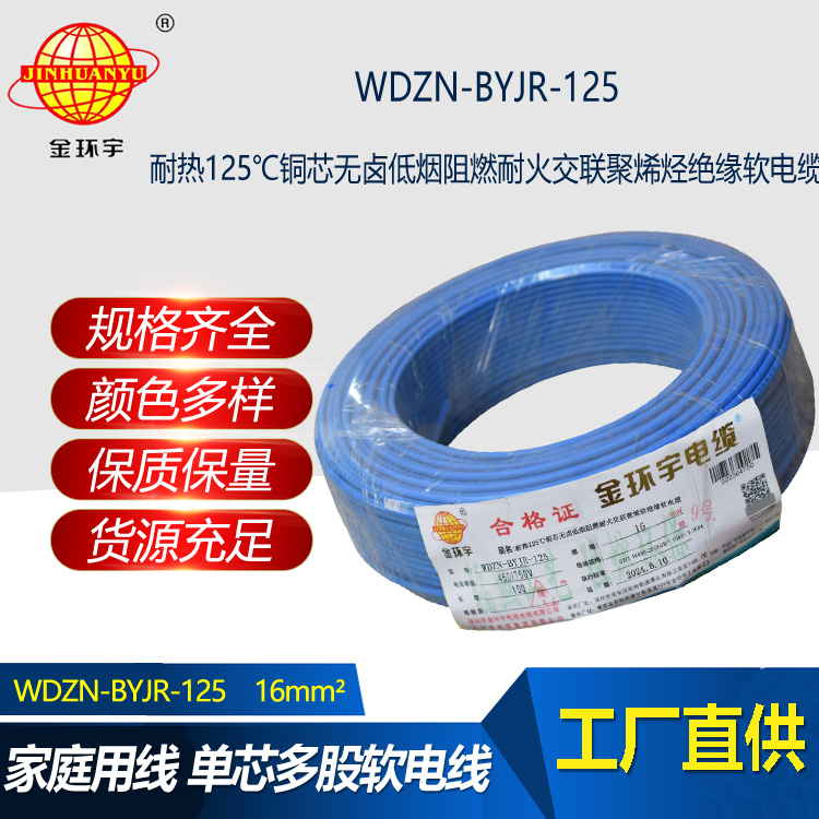 WDZN-BYJR-125是一種交聯(lián)聚乙烯新型裝修的布電線。WDZN-BYJR-125布電線的特點(diǎn)就是低煙量、無鹵素、阻燃、耐火。每個字母代表的意思:W代表無鹵;D代表低煙;Z代表阻燃;N代表耐火;125代表溫度可達(dá)到125℃,YJ代表交聯(lián)聚乙烯絕緣;R代表軟。其導(dǎo)體主要是銅線,有薄的絕緣層和良好的電氣機(jī)械性能,以及耐熱、防潮、耐溶劑等性能,選用不同的絕緣材料可獲得不同的特性。