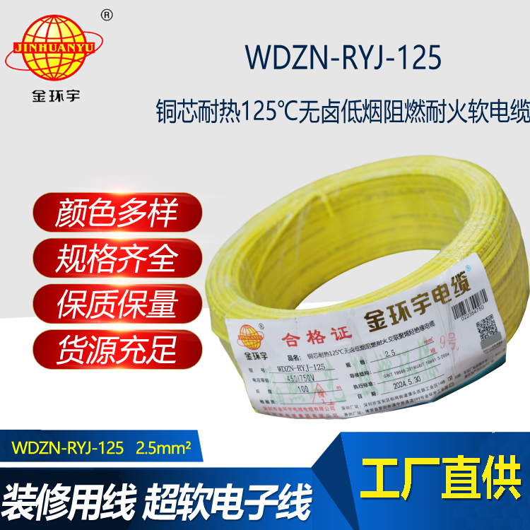 WDZN-RYJ-125低煙無(wú)鹵軟電線采用銅芯耐熱125℃無(wú)鹵低煙阻燃耐火交聯(lián)聚烯烴絕緣材料制成,適用于額定電壓450/750V及以下的固定布線和電力、電...