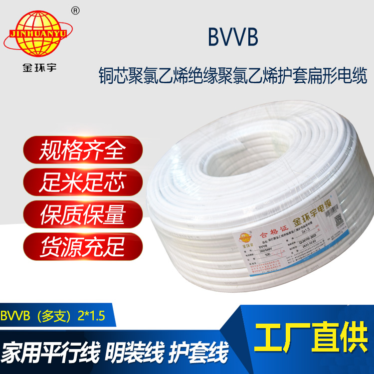 BVVB 銅芯聚氯乙烯絕緣聚氯乙烯護套平型電纜,適用于交流電壓450/750V及以下動力裝置、日用電器、儀表及電信設備用的電纜電線。