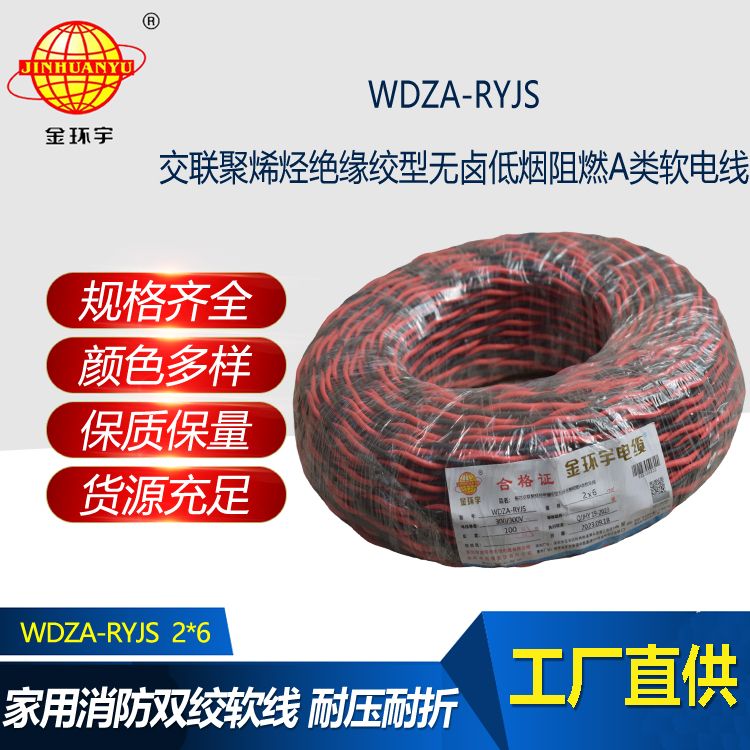 WDZA-RYJS:低煙無鹵交聯聚烯烴絕緣a類阻燃雙絞線;是消防用低煙無鹵阻燃聚烯烴絕緣連接軟線是參照GB/T5023-2008等標準制訂的,其耐火特性符合GB/Tl9666類的要求。