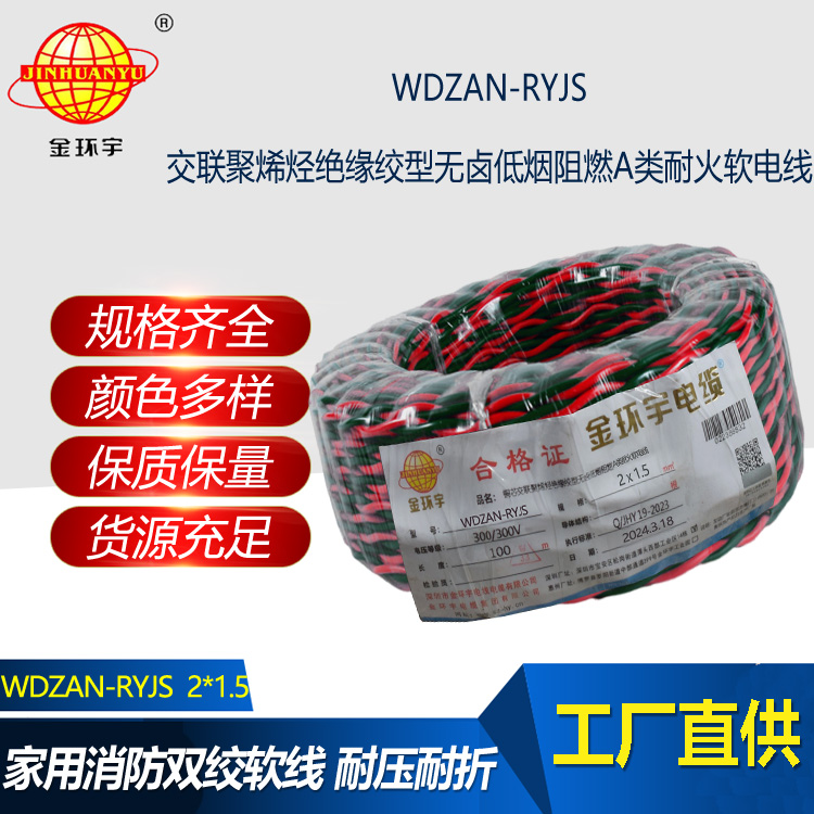 WDZAN-RYJS:低煙無鹵交聯(lián)聚烯烴絕緣a類阻燃耐火雙絞線;是消防用低煙無鹵阻燃耐火聚烯烴絕緣連接軟線是參照GB/T5023-2008等標(biāo)準(zhǔn)制訂的,其耐火特性符合GB/Tl9666類的要求。