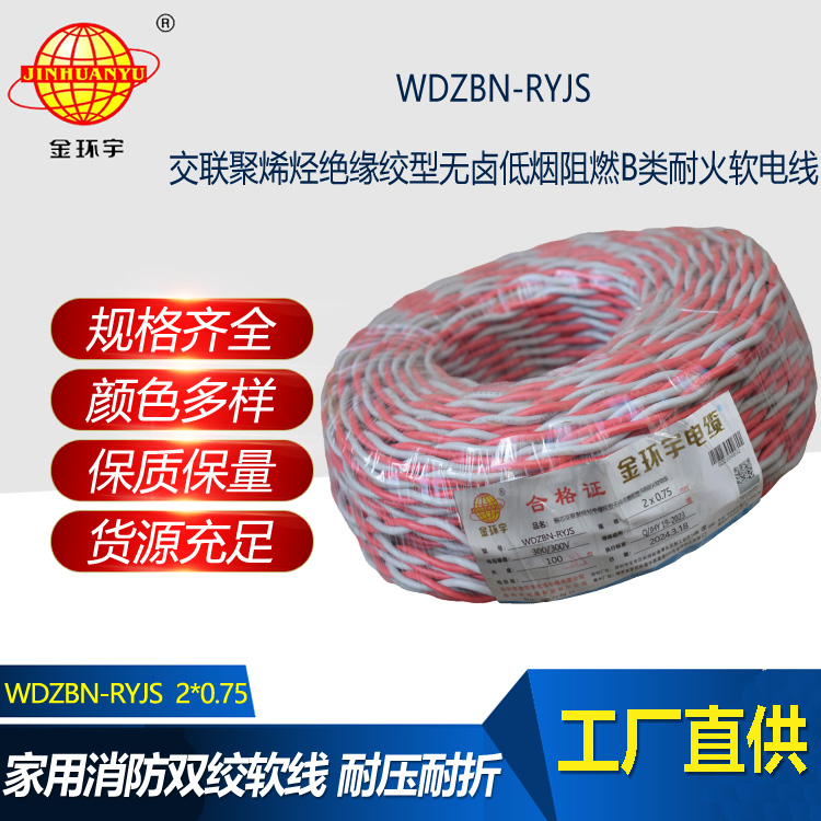 我們榮幸地介紹金環宇的新產品——WDZBN-RYJS低煙無鹵阻燃耐火電纜。這是一款銅芯、低煙無鹵B類阻燃耐火交聯聚烯烴絕緣絞型連接線,是消防用B類阻燃耐火聚烯烴絕緣連接軟線。