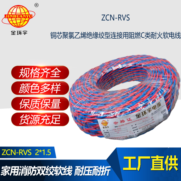 “ZCN-RVS”表示阻燃耐火型聚氯乙烯絕緣雙絞線。RVS--300/300V-聚氯乙烯絕緣絞型連接用軟電線。ZC是指阻燃C級,N-耐火型的。