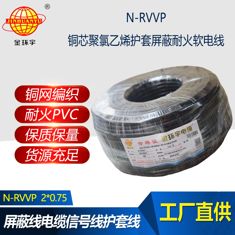 金環宇電線電纜 深圳rvvp屏蔽電纜廠家 耐火電纜N-RVVP 2X0.75