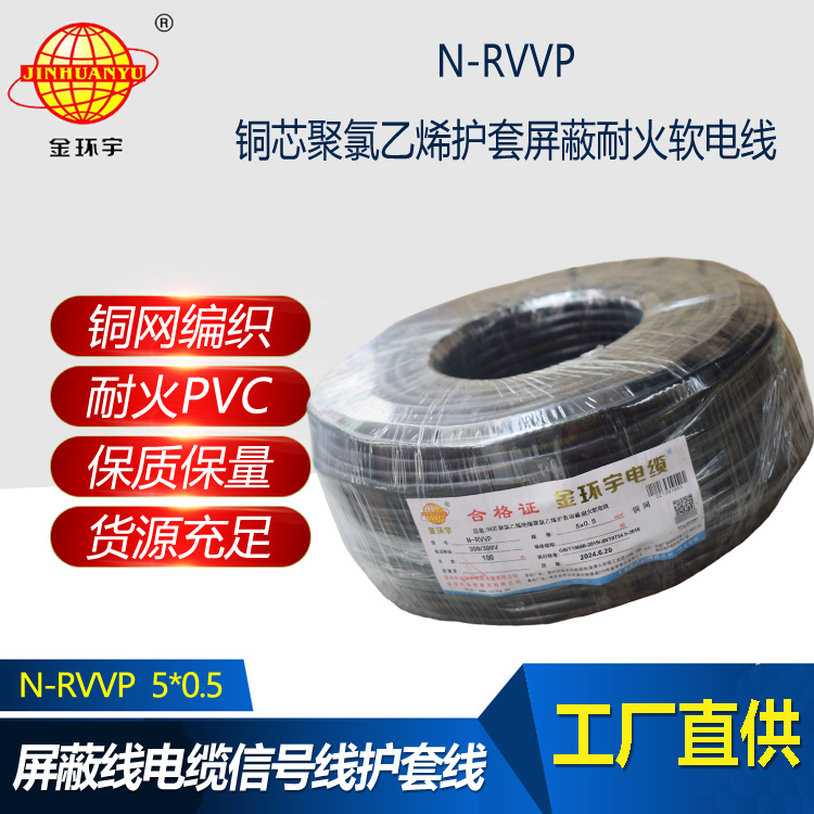 金環宇電線電纜 5芯屏蔽電纜型號N-RVVP5X0.5耐火屏蔽電纜