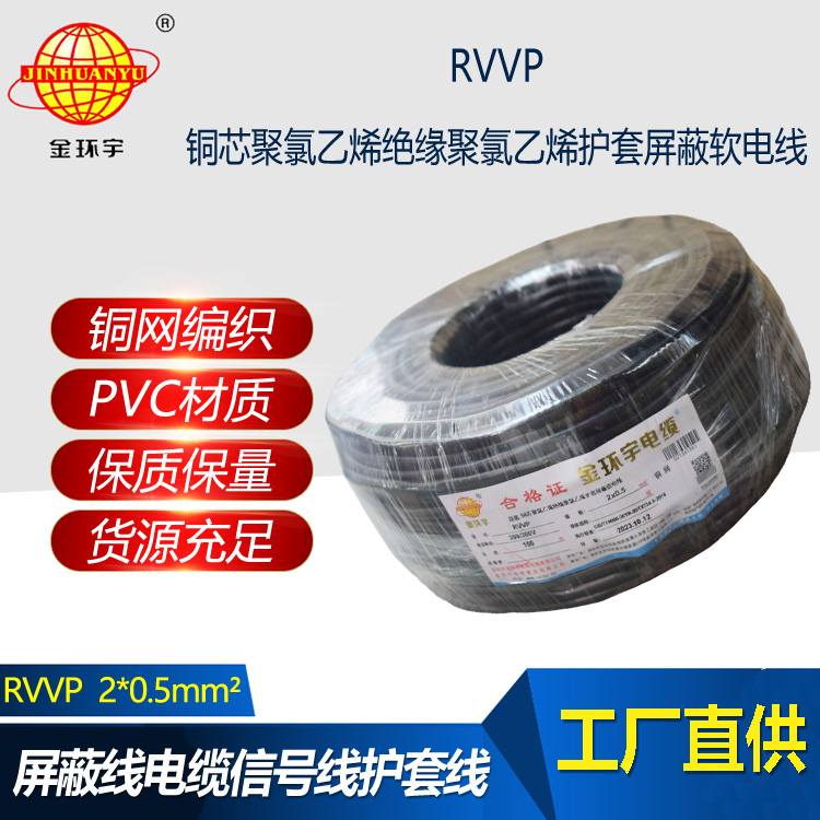 金環宇電線電纜 RVVP屏蔽線2x0.5平方屏蔽防干擾信號通訊電線