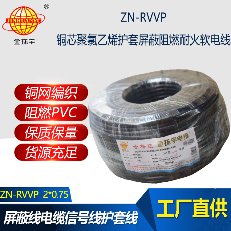 金環宇電線電纜 二芯rvvp電纜 ZN-RVVP2X0.75阻燃耐火屏蔽電線電纜
