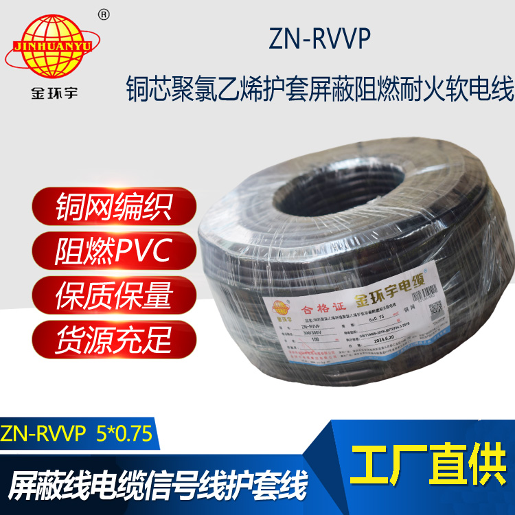 金環宇電線電纜 銅絲編織屏蔽電纜 ZN-RVVP 5X0.75 阻燃耐火rvvp電線電纜