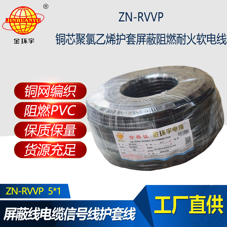 金環宇電線電纜 ZN-RVVP 5X1平方 銅編織阻燃耐火屏蔽軟電纜價格