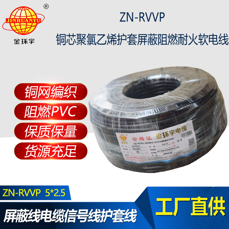 金環宇電線電纜 ZN-RVVP 5X2.5平方 信號屏蔽軟電纜 阻燃耐火電線電纜