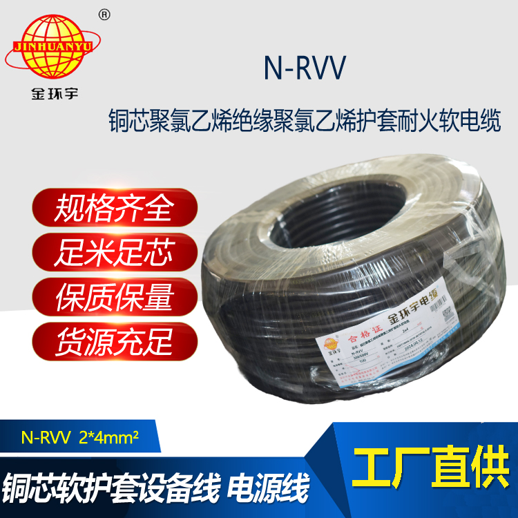 N-RVV是指銅芯耐火聚氯乙烯絕緣聚氯乙烯護套軟電纜。N表示耐火;RVV電纜是弱電系統常用的電纜,其芯線根數不定,兩根或以上,外面有PVC護套,芯線之間的排列沒有特別要求。 字母R代表軟線字母V代表絕緣體聚氯乙烯(PVC)