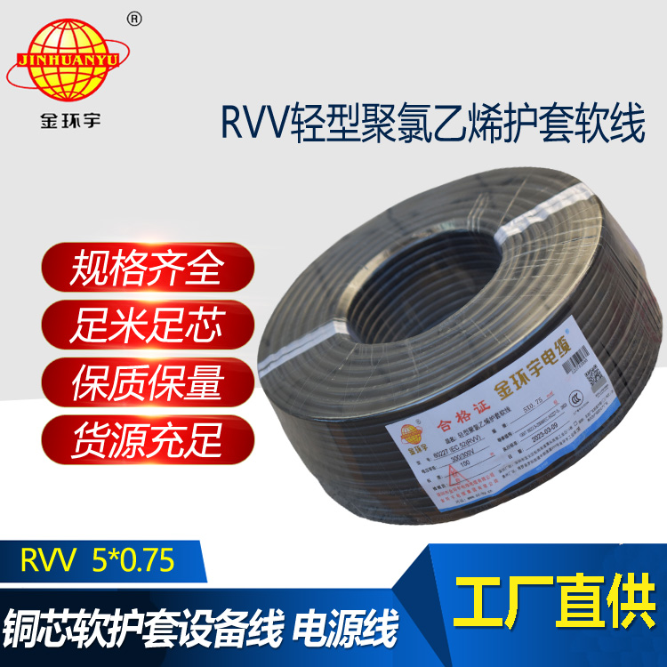 金環宇電纜 RVV 5X0.75平方 rvv電源線 深圳軟護套電纜rvv