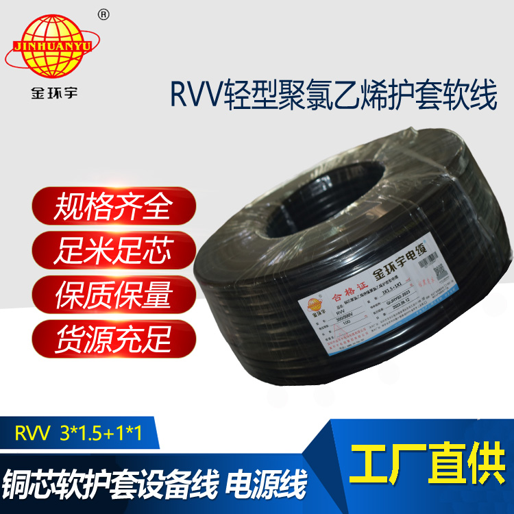 金環宇電纜 rvv電纜RVV 3X1.5+1X1平方 深圳軟護套電纜