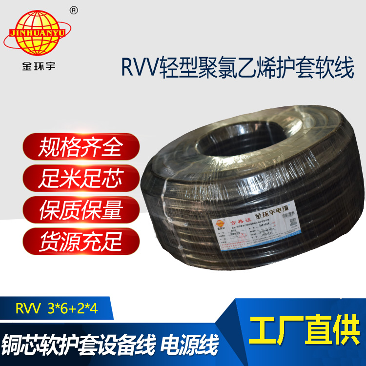 金環宇電纜 rvv電纜價格RVV 3X6+2X4平方 深圳rvv多芯電纜