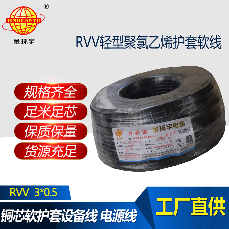 金環(huán)宇電纜 RVV 3X0.5平方 軟護(hù)套電纜 rvv電源線