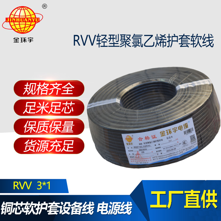 金環宇電纜 rvv軟電纜 護套電纜線RVV 3X1平方