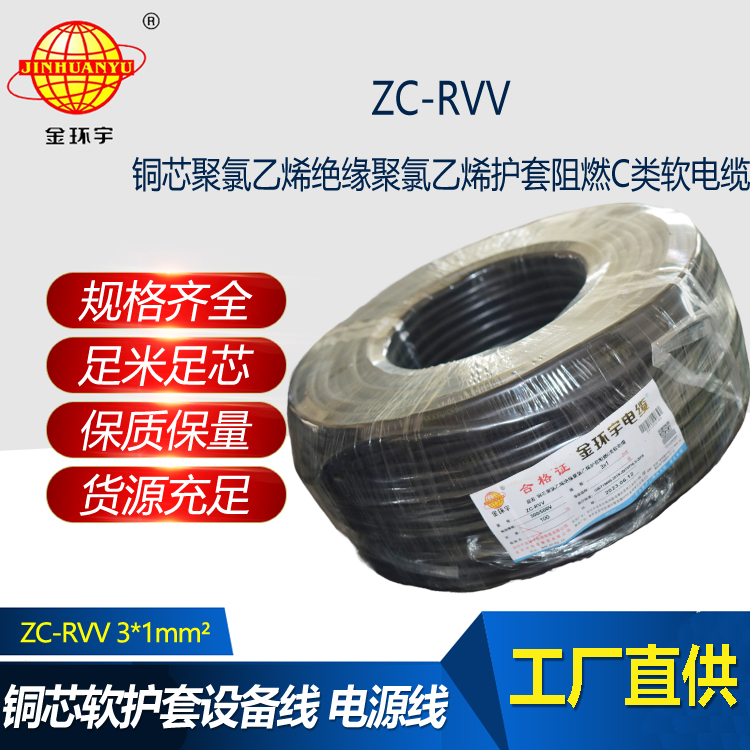 金環宇電線電纜 c類阻燃電纜ZC-RVV 3X1平方 三芯rvv電源線