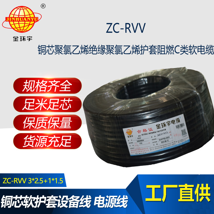 金環宇 4芯rvv軟電纜 ZC-RVV 3X2.5+1X1.5阻燃電線電纜