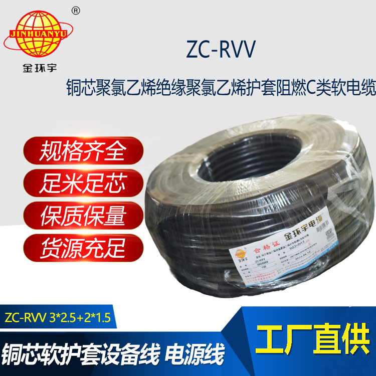 金環宇電線電纜 深圳rvv電纜 c級阻燃電纜ZC-RVV 3X2.5+2X1.5平方