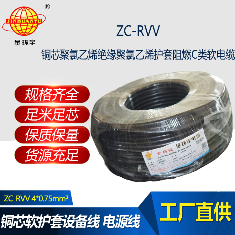 金環宇電線電纜 阻燃c類電纜ZC-RVV4芯0.75平方 控制信號電纜