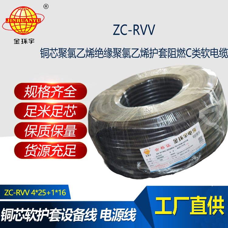 金環宇電線電纜 ZC-RVV4X25+1X16平方 c級阻燃電纜 銅芯rvv電纜線