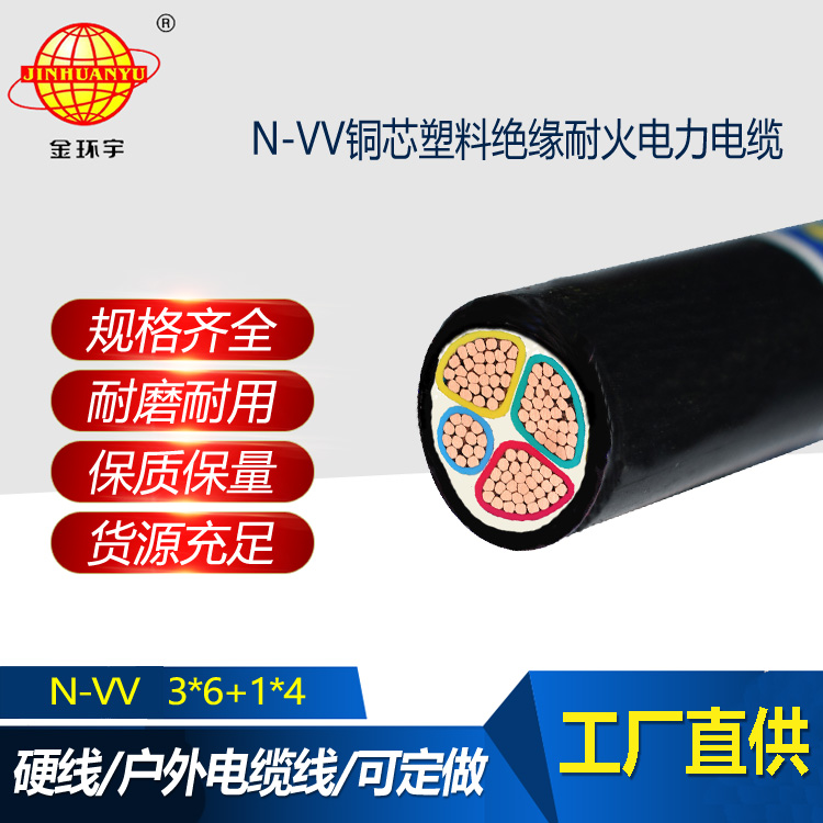 金環宇電線電纜 銅芯耐火電線電纜vv電纜N-VV 3X6+1X4平方