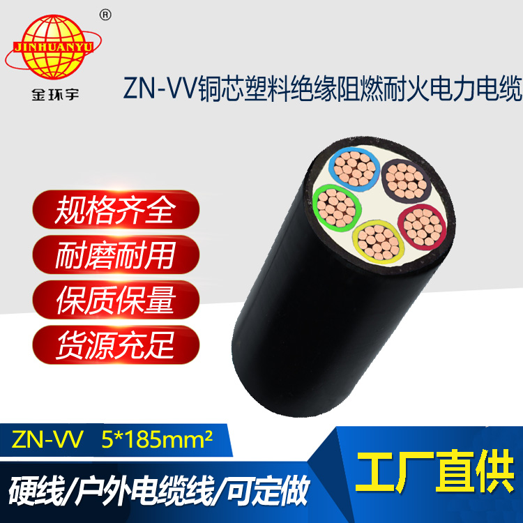 金環宇電纜 ZN-VV 5X185平方 低壓電纜vv阻燃耐火電纜