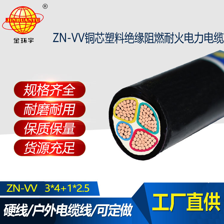 金環宇電纜 低壓電力電纜ZN-VV 3X4+1X2.5阻燃耐火電纜報價
