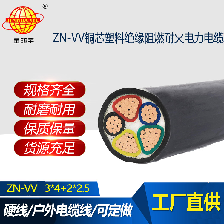 金環宇電纜 阻燃耐火電纜 vv電纜 ZN-VV 3X4+2X2.5平方