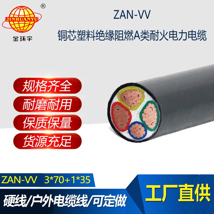 金環宇電纜 vv動力電纜ZAN-VV 3X70+1X35 阻燃耐火vv銅芯電纜