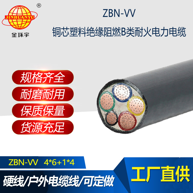 金環宇電線電纜 5芯vv電力電纜ZBN-VV4x6+1x4平方 b級阻燃耐火電纜