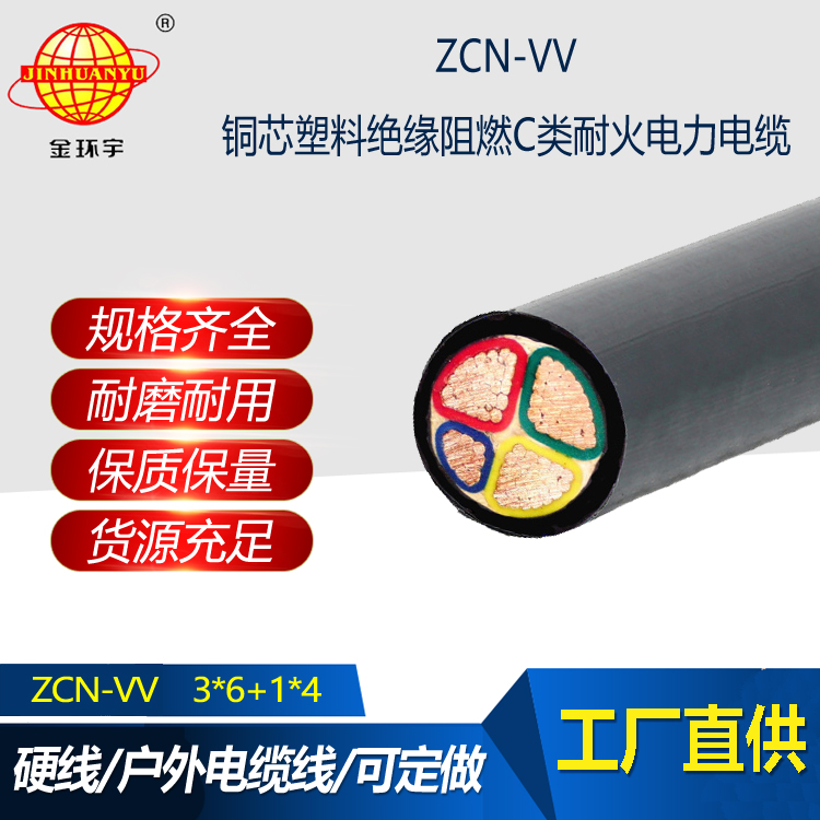 金環宇電纜 ZCN-VV 3X6+1X4耐火電力電纜 vv阻燃c類電纜