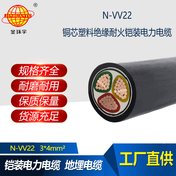 VV22:敷設在室內,隧道及直埋土壤中,電纜能承受壓力和其他外力作用。