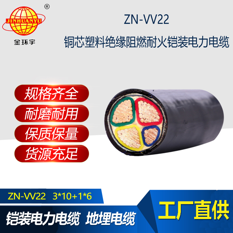 金環宇電線電纜 阻燃耐火鎧裝電纜四芯電纜 ZN-VV22-3X10+1X6