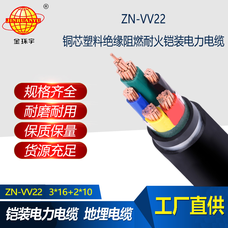 金環宇電線電纜 ZN-VV22-3X16+2X10平方阻燃耐火電纜 三相五線vv22電纜